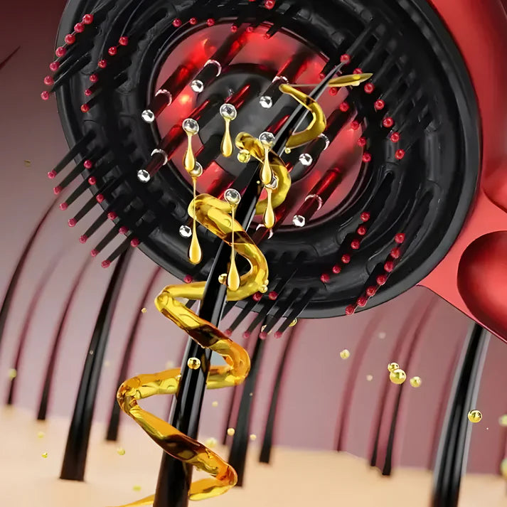 La Cosy-Brush combine micro-mouvements massants, lumière LED rouge et diffusion de soins pour agir directement à la racine de tes cheveux.